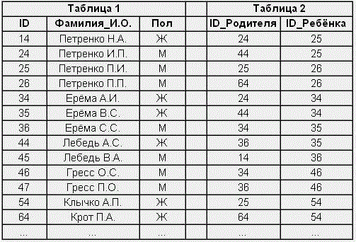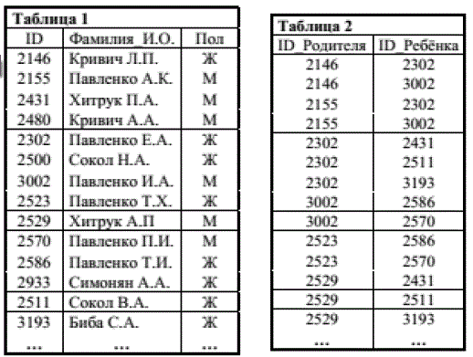 В фрагменте базы данных представлены сведения о родственных отношениях. На основании приведённых данных определите, сколько прямых потомков (т.е. детей и внуков) Павленко А.К. упомянуты в таблице 1.
